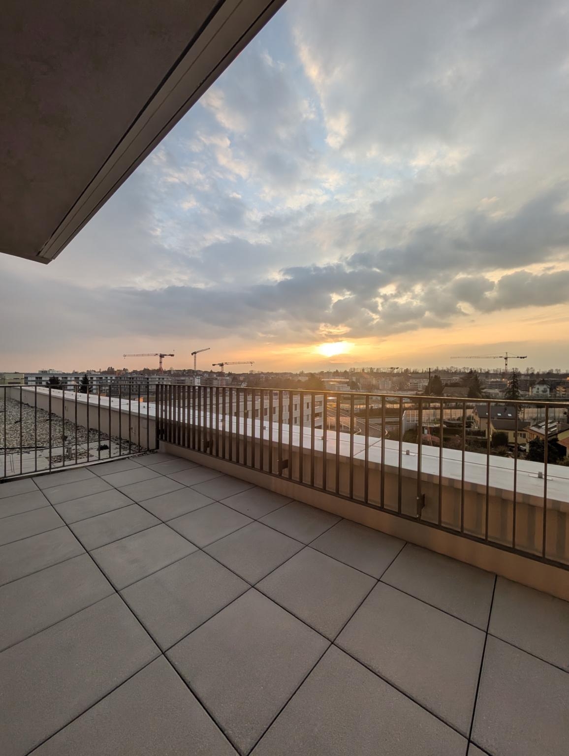 Offrant une vue imprenable sur la ville et un bout du lac, cet appartement allie confort, élégance et modernité.