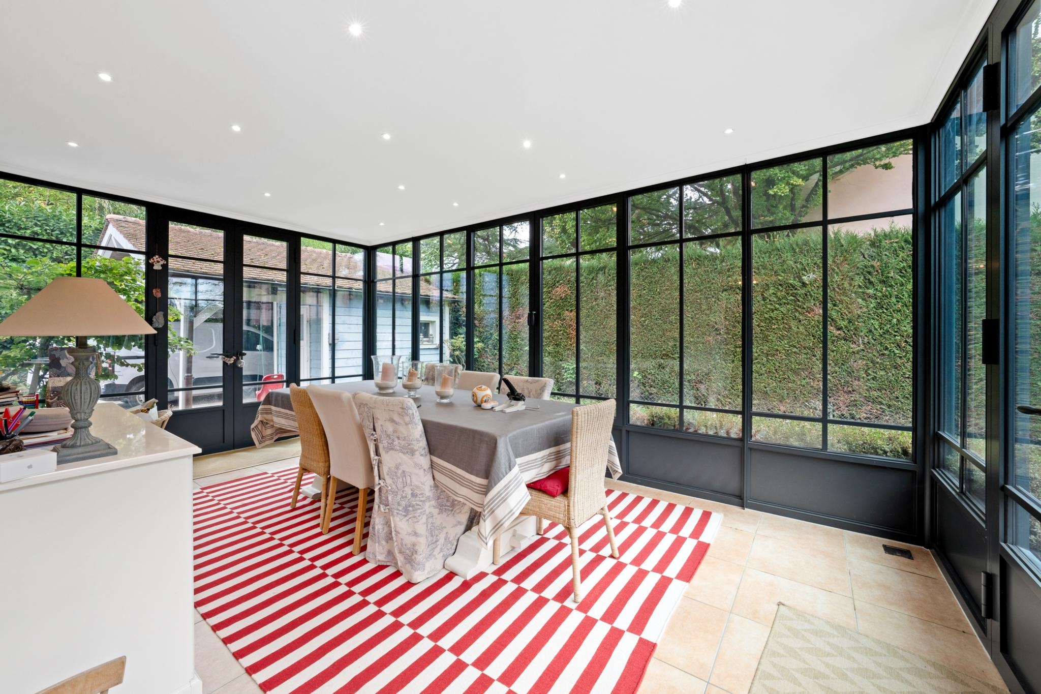 Au rez-de-chaussée, elle offre un hall d’entrée, une cuisine agencée, une belle véranda, un séjour avec cheminée donnant accès à la terrasse ainsi qu’un WC visiteur.