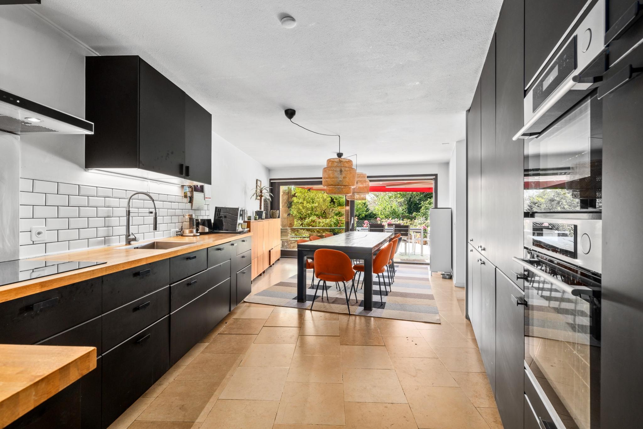 Il comprend une cuisine ouverte sur une salle à manger donnant accès à une belle terrasse, ainsi qu'un salon équipé d'une cheminée et menant également à une terrasse. L'appartement dispose de deux chambres, d'un bureau et de deux salles de bains. Un jardin magnifiquement arboré de 710 m², une grande terrasse orientée plein sud avec une vue dégagée complètent ce cadre de vie exceptionnel.