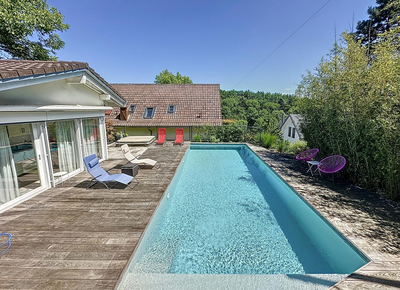 Un pool house avec cuisine équipée, une salle de douche, une grande piscine, un jacuzzi et un magnifique jardin verdoyant complètent idéalement ce bien.