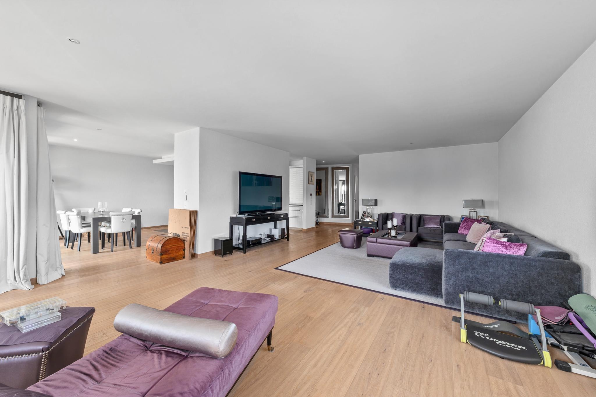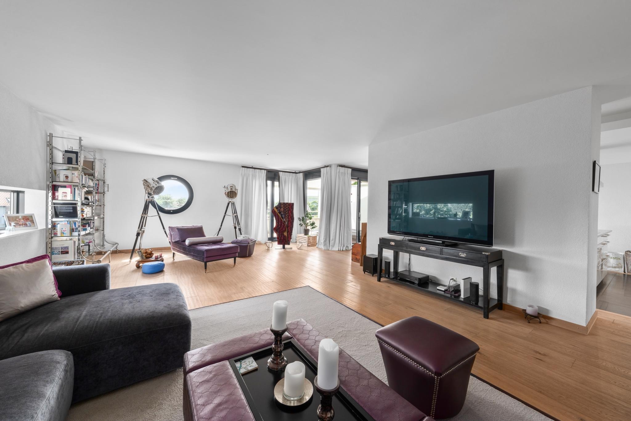 Très bel appartement de 4,5 pièces lumineux, moderne et en parfait état au centre de Nyon. Il a une surface habitable de 148 m², avec une belle terrasse.