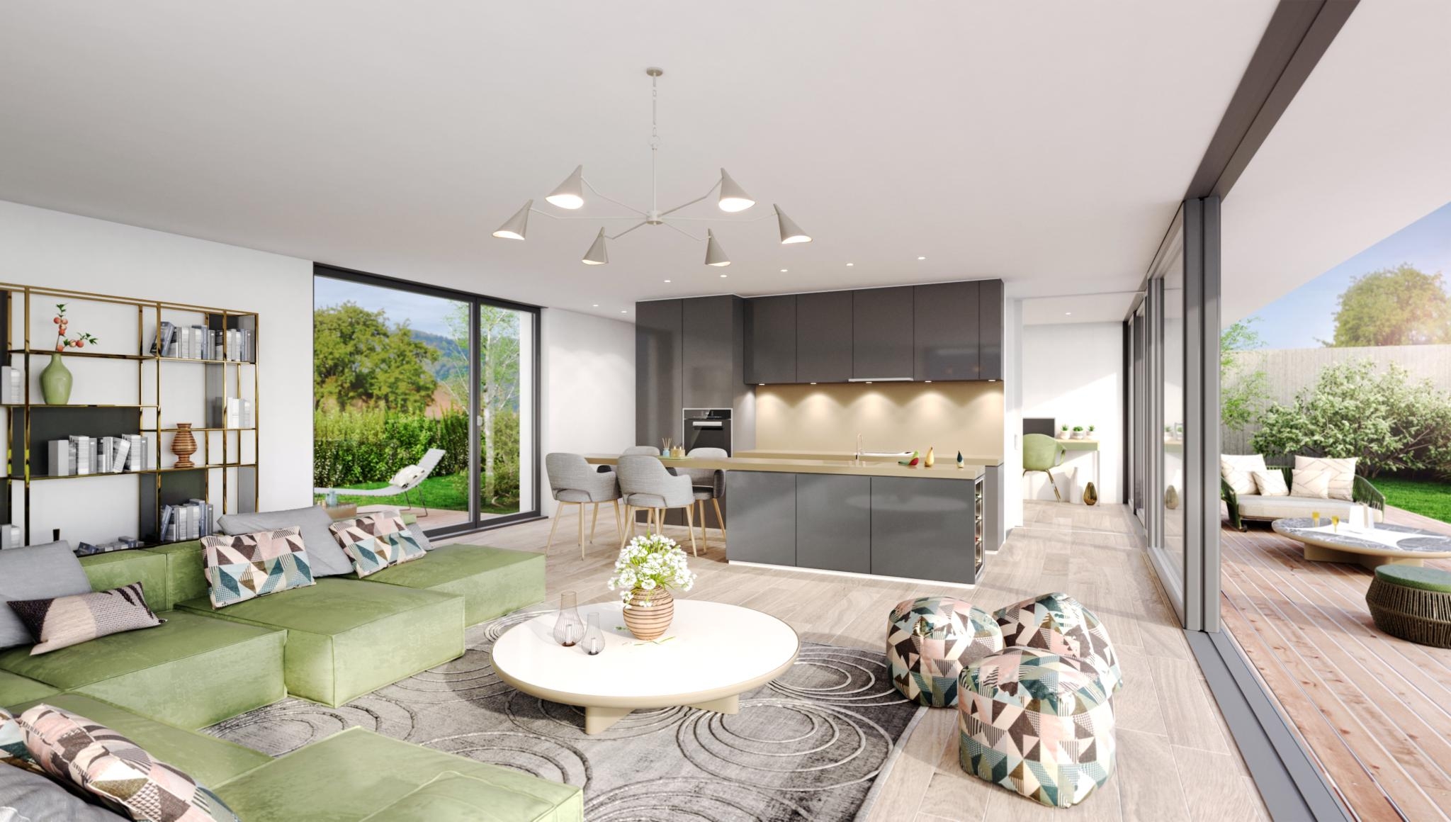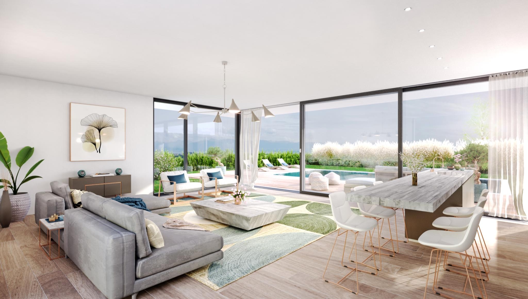 Elles sont à environ 7 minutes à pied de l’école primaire, de la piscine et proches des commodités. Sur une parcelle de 1'630 m², ces villas sont composées d’un grand et lumineux séjour, d’une cuisine ouverte avec un coin repas, un w.-c. visiteurs, de trois ou quatre chambres et de deux salles de bains.