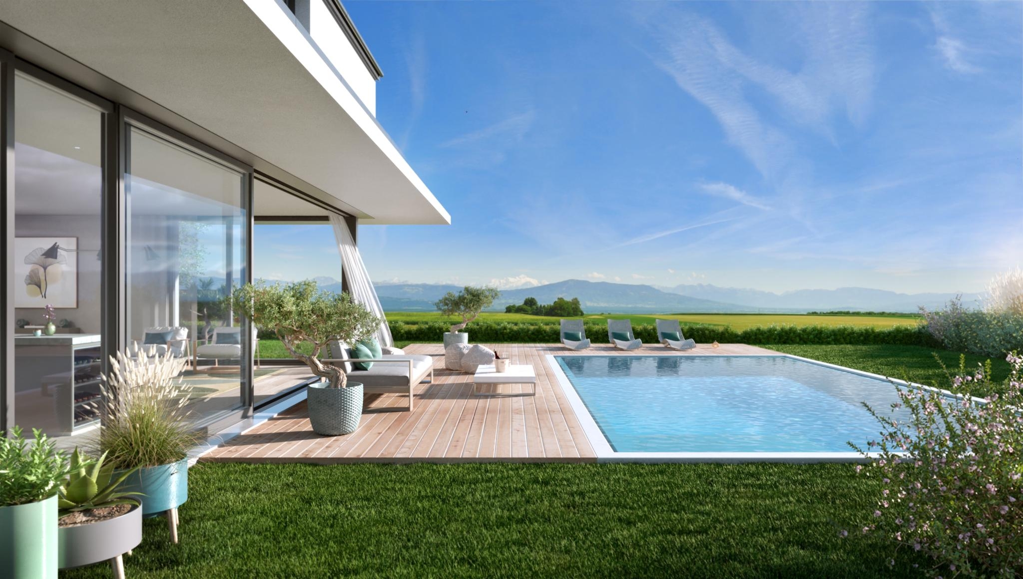 Une villa individuelle avec vue Alpes et lac